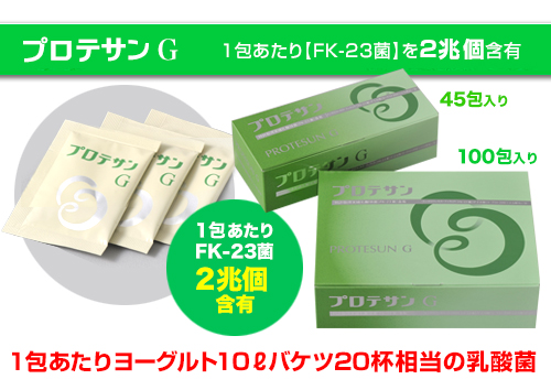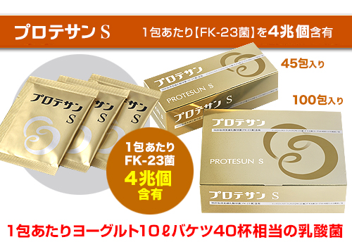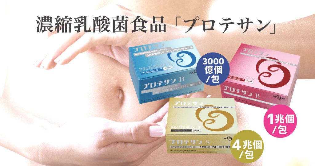 一般に乳酸菌食品には生きた乳酸菌が含有されていますが、長年の研究により、『加熱処理した菌体』の方が安全性と3倍働きが強いことを解明しました。 『プロテサン』は、優れた「FK–23菌」の能力を発揮するため加熱処理したFK–23菌が含有されており、生きた菌では不可能であった多量の菌体を含有する濃縮乳酸菌食品なのです。